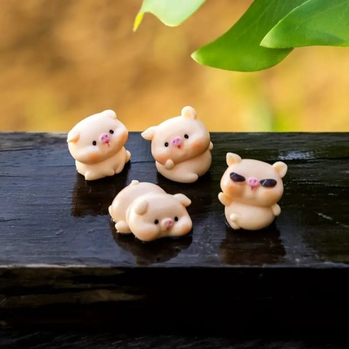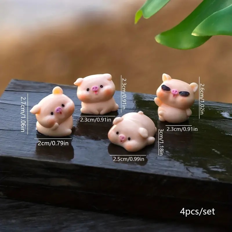 4pcs/set, Artesanías De Resina Adornos De Cerdo DIY Micro Paisaje Árbol Adornos, Decoración De Patio, Suministros De Jardín, Suministros De Vacaciones, Arreglo De Vacaciones, Adornos De Artesanía De Resina Para Patio, Césped, Decoración De Arte De Jardín