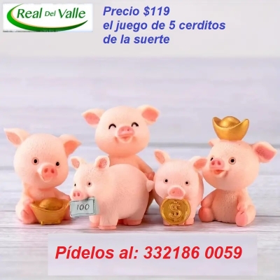 Juego de 5 cerditos de la suerte, divertidas figuras en resina plástica, para que tu diversión, ya sea adornando, decorando, jugando, coleccionando, etc.