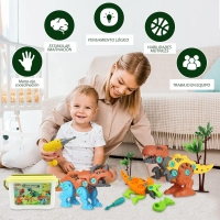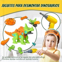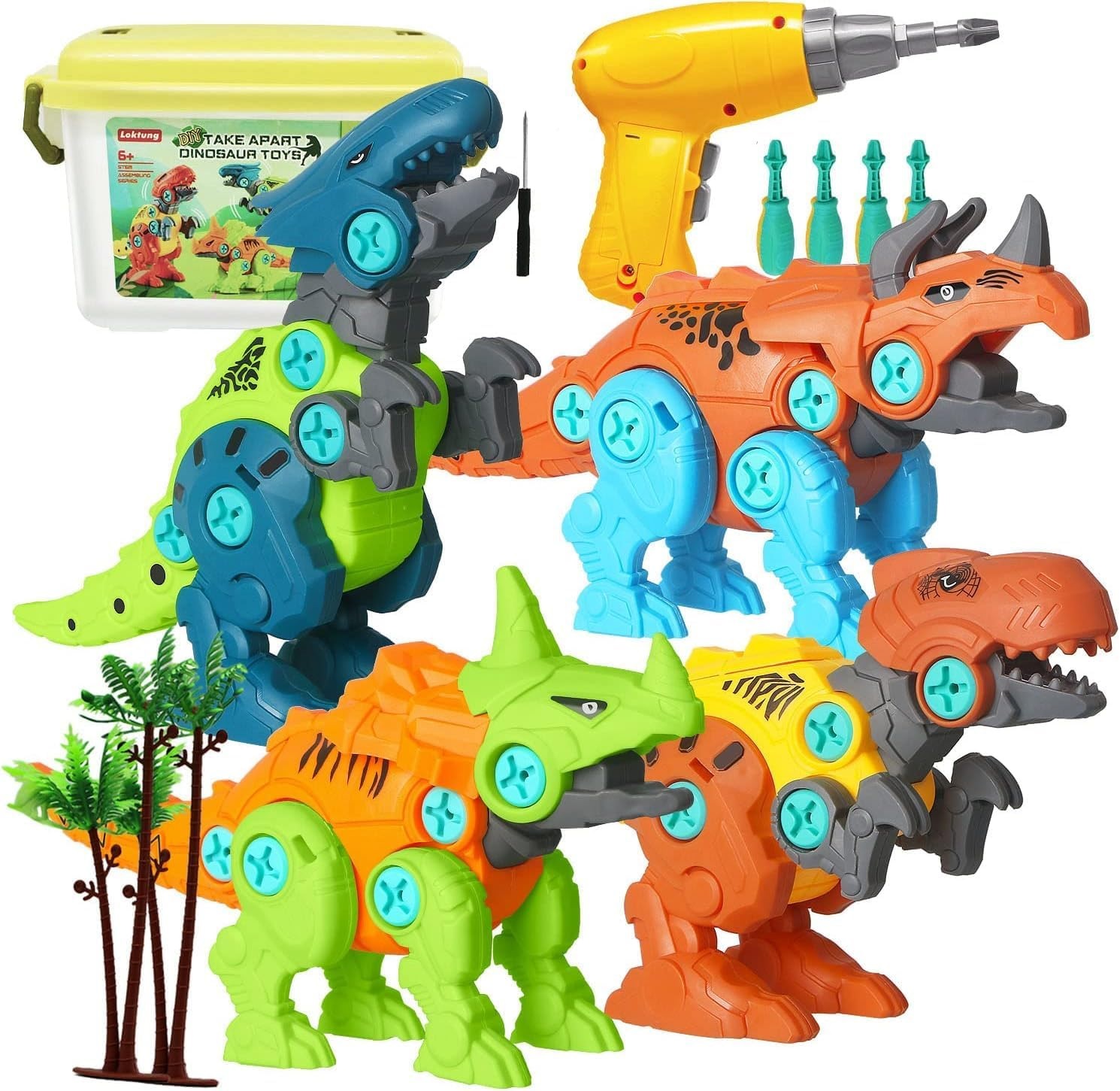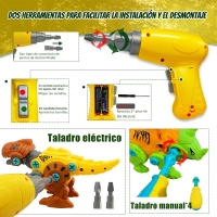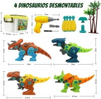 ASVEL Juego de Dinosaurios de Desmontaje de Bricolaje, Juguete de Dinosaurio Desmontable de 4 Piezas con Caja de Almacenamiento de Taladro eléctrico, Regalo Ideal para niños y niñas de 6 años.