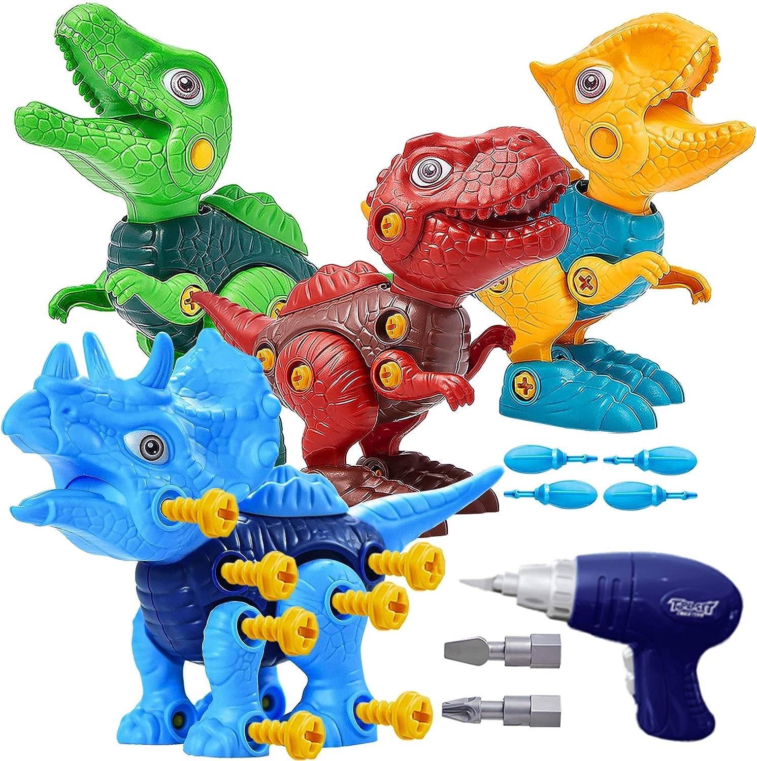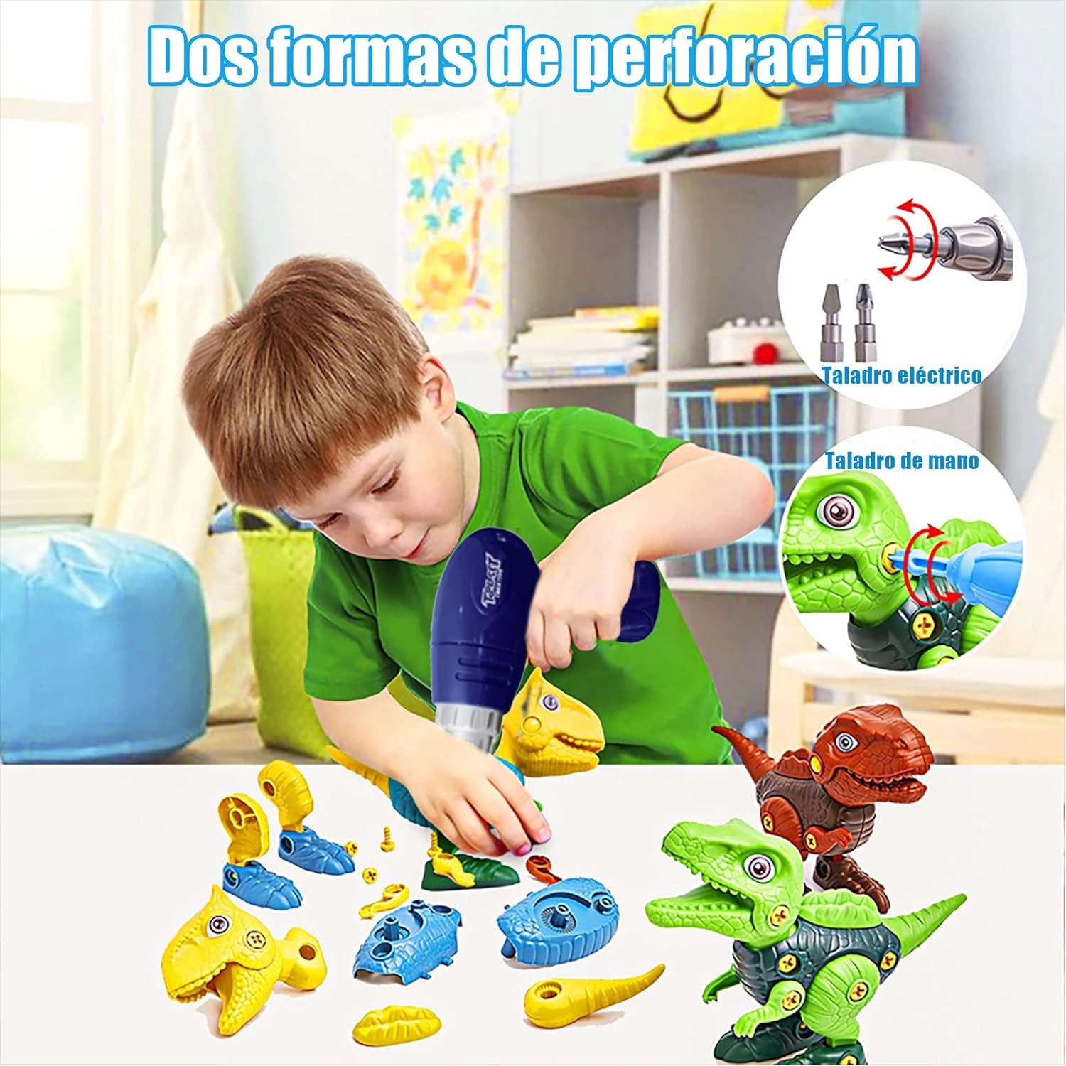 Dinosaurio Juguetes con Taladro Eléctrico, DIY Juego de Construcción Educativos Stem, Regalos de Cumpleaños Navidad Pascua para Niños 3 a 7 Años