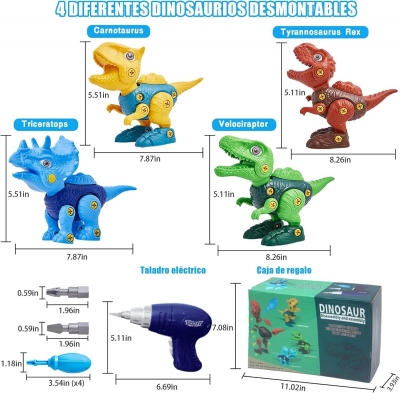 【4Pzs Juguetes de dinosaurios】Pantio juguetes de dinosaurios take apart incluyen 4 tipos de dinosaurios: Tyrannosaurus Rex marrón, Velociraptor verde, Triceratops azul, Carnotaurus amarillo. Diseño de simulación y texturas claras, que estimularán en gran medida la imaginación de los dinosaurios de los niños. Los niños también pueden reconocer y explora el misterioso mundo de los dinosaurios.