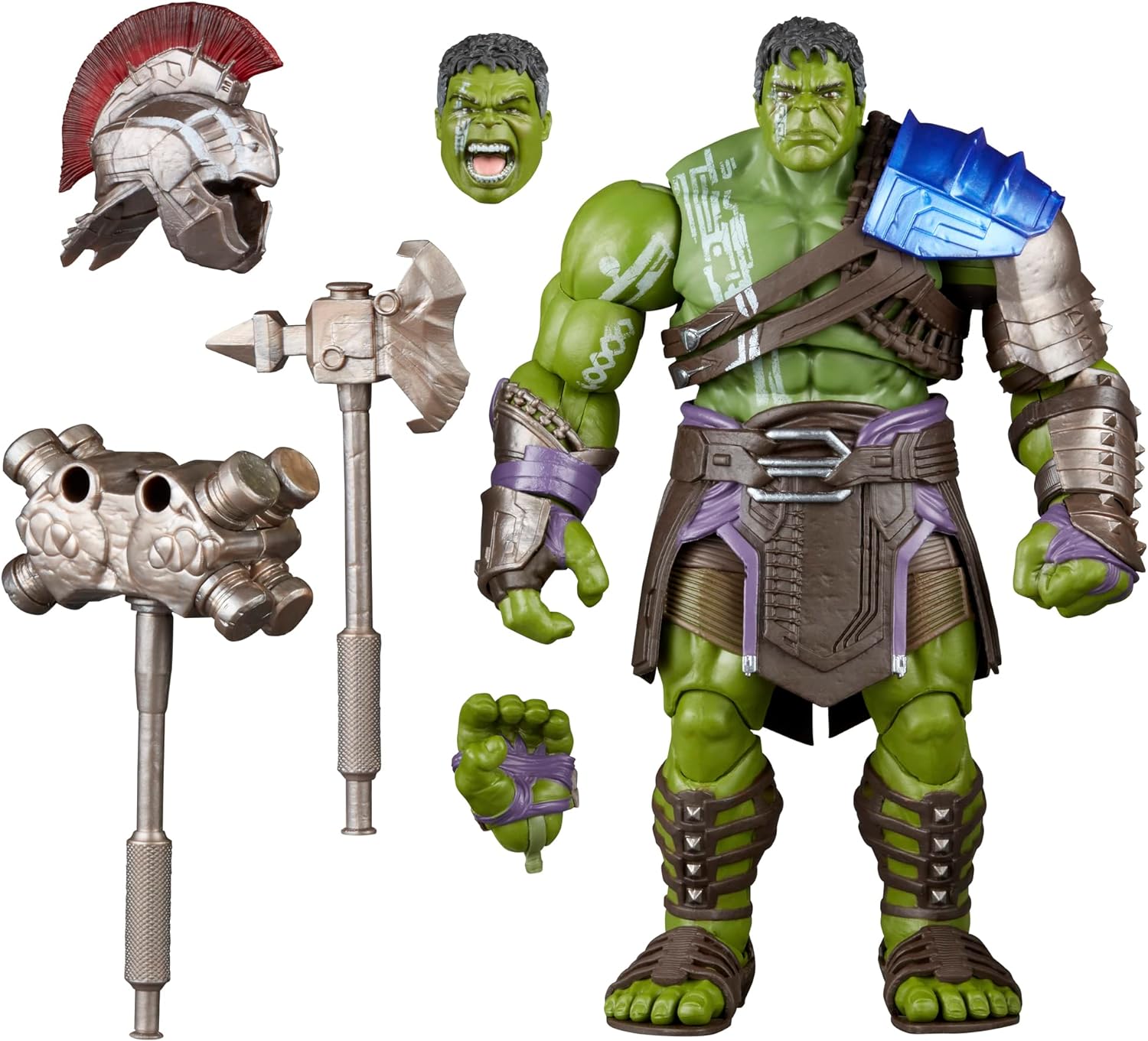 HULK GLADIADOR, INSPIRADO EN EL UNIVERSO CINEMATOGRÁFICO DE MARVEL: Esta figura de acción de Hulk Gladiador está inspirada en la apariencia del personaje en la película Thor: Ragnarok, de Marvel Studios. Es una gran adición a cualquier colección de figuras de acción de Marvel Legends