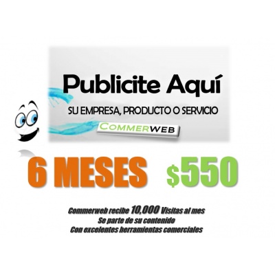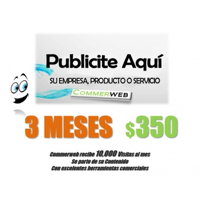 Espacio para tu Anuncio en CommerwebNuestra web recibe mas de 10Mil visitas al mesde buscadores de productos y servicios.