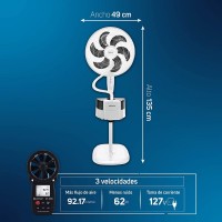 FUNCIONAL. 3 velocidades, oscilación de amplio espectro, cabezal de posición vertical ajustable y altura regulable hasta 1.35 m