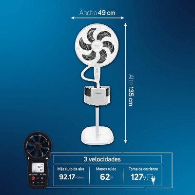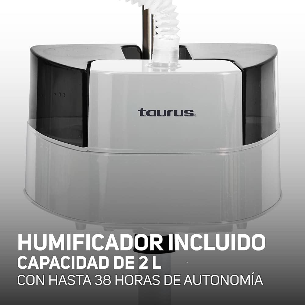 MULTIFUNCIÓN. Incluye humidificador en frío con 2 litros de capacidad desmontable para uso independiente del ventilador con hasta 38 horas de autonomía y brisa regulable