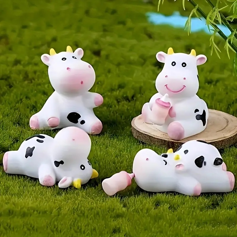 8 Piezas, Mini Adorno De Vaca De Resina